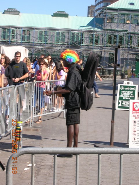 頂個彩色的阿福羅頭,拿了把吉他,彈彈唱唱的